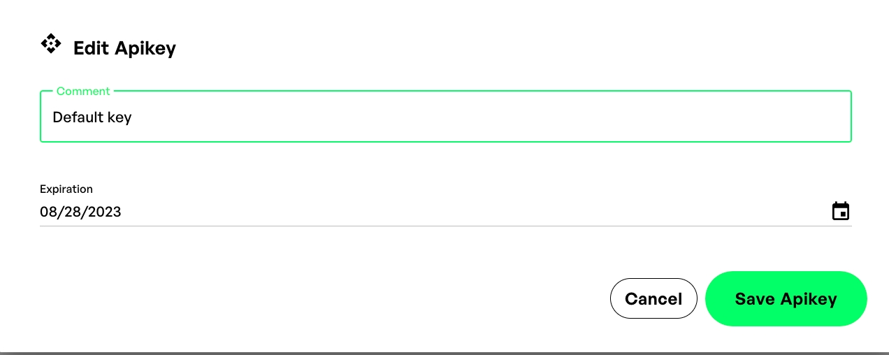 編集ボタンを選択すると、APIキーの名前と有効期限を変更できます。