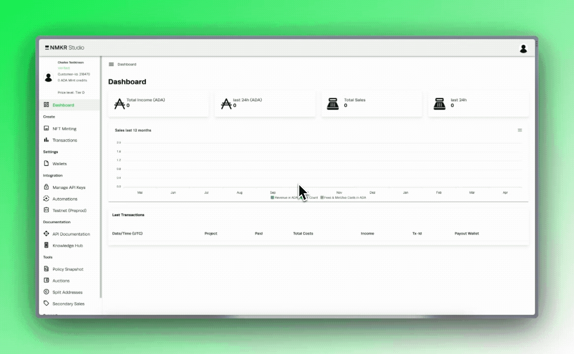 NMKR Studioでは、APIキーを無限に生成することができます。