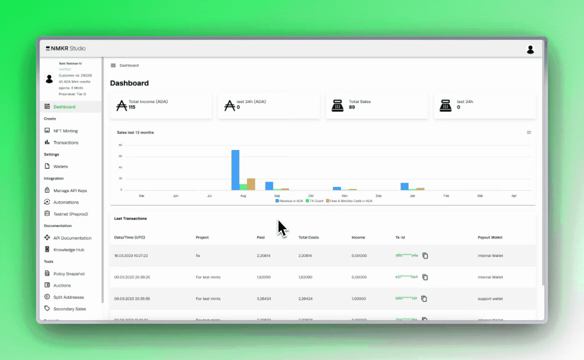 * セキュリティを強化するには、アカウントに[2要素認証（2FA](https://docs.nmkr.io/nmkr-studio/account/security#2-factor-authentication)）を設定します。