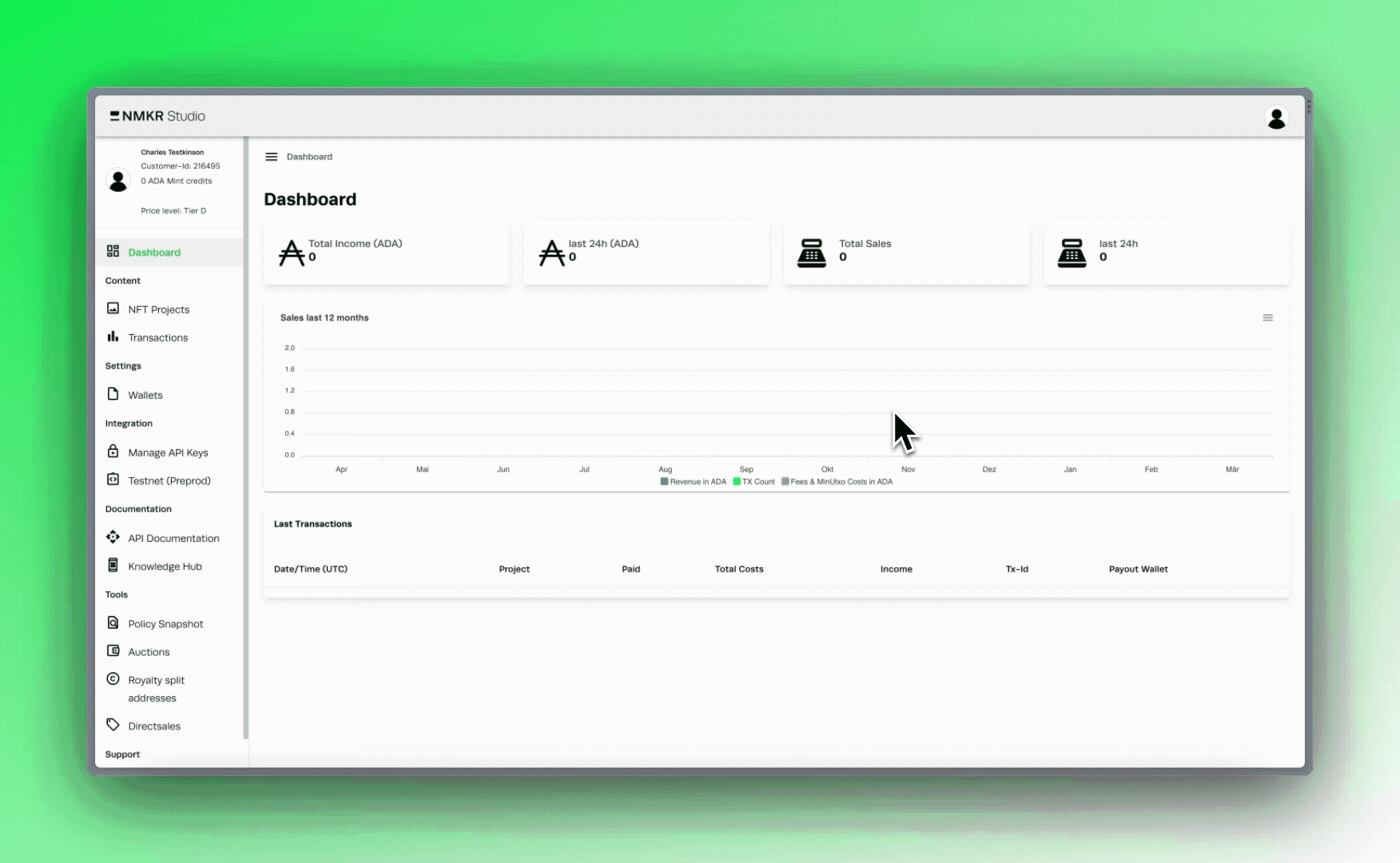 * チームで作業している場合は、[追加の支払いウォレット](https://docs.nmkr.io/nmkr-studio/project/additional-payout-wallets)または[分割アドレス](https://docs.nmkr.io/nmkr-studio/tools/split-addresses)で収益を共有できます
