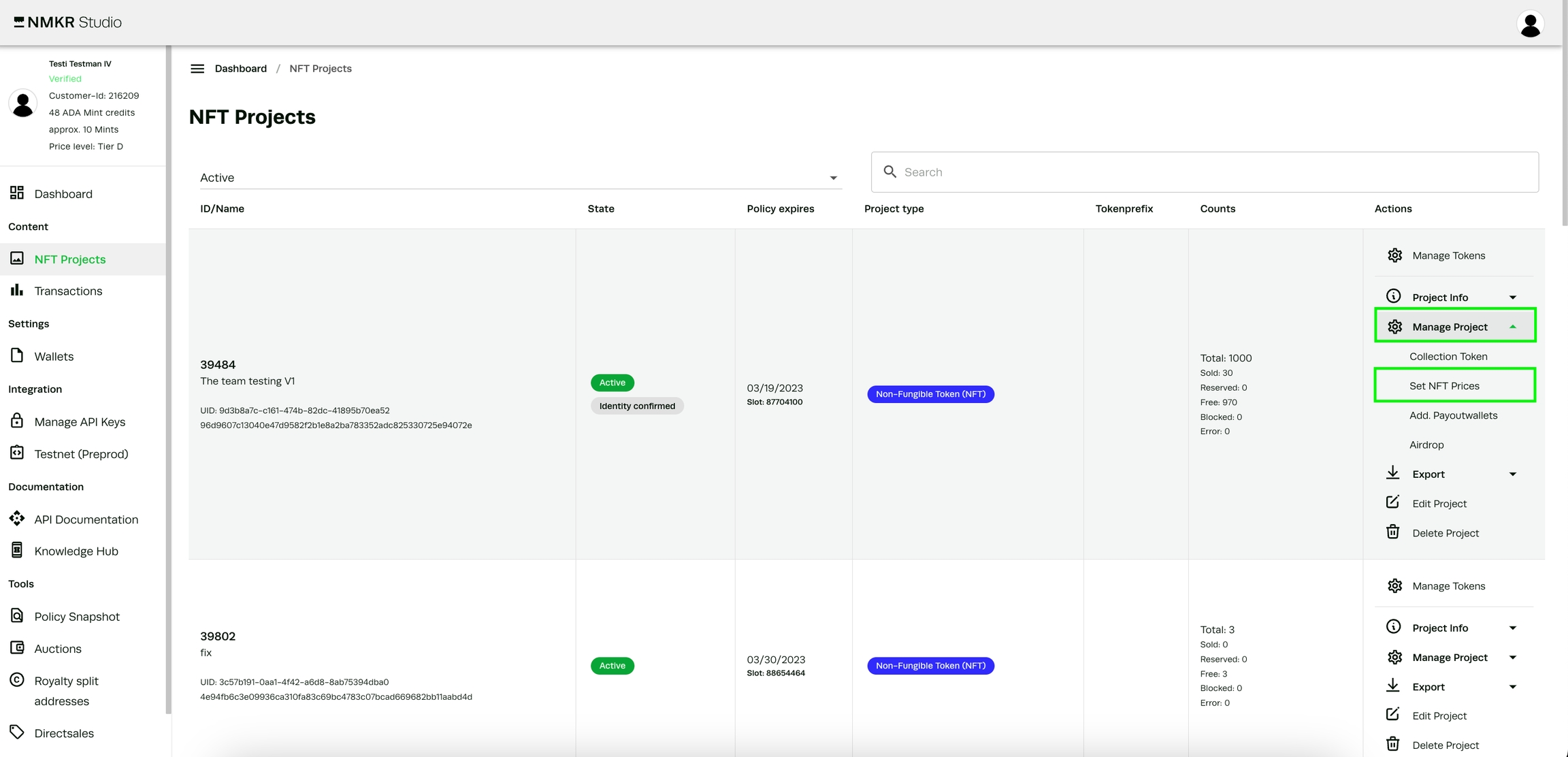 NMKR Studioには、NMKR PayとPay-in Addressを介してオンデマンドで販売するための価格と金額のペアを指定することができるビルドイン価格リストがあります。割引、無料ドロップ、カスタムCardanoネイティブトークンでの価格指定などの機能があります。