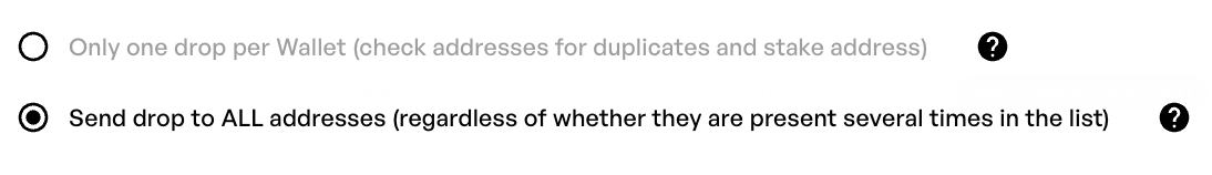 次のステップで、各アドレスにエアドロップするトークンの量を選択します。