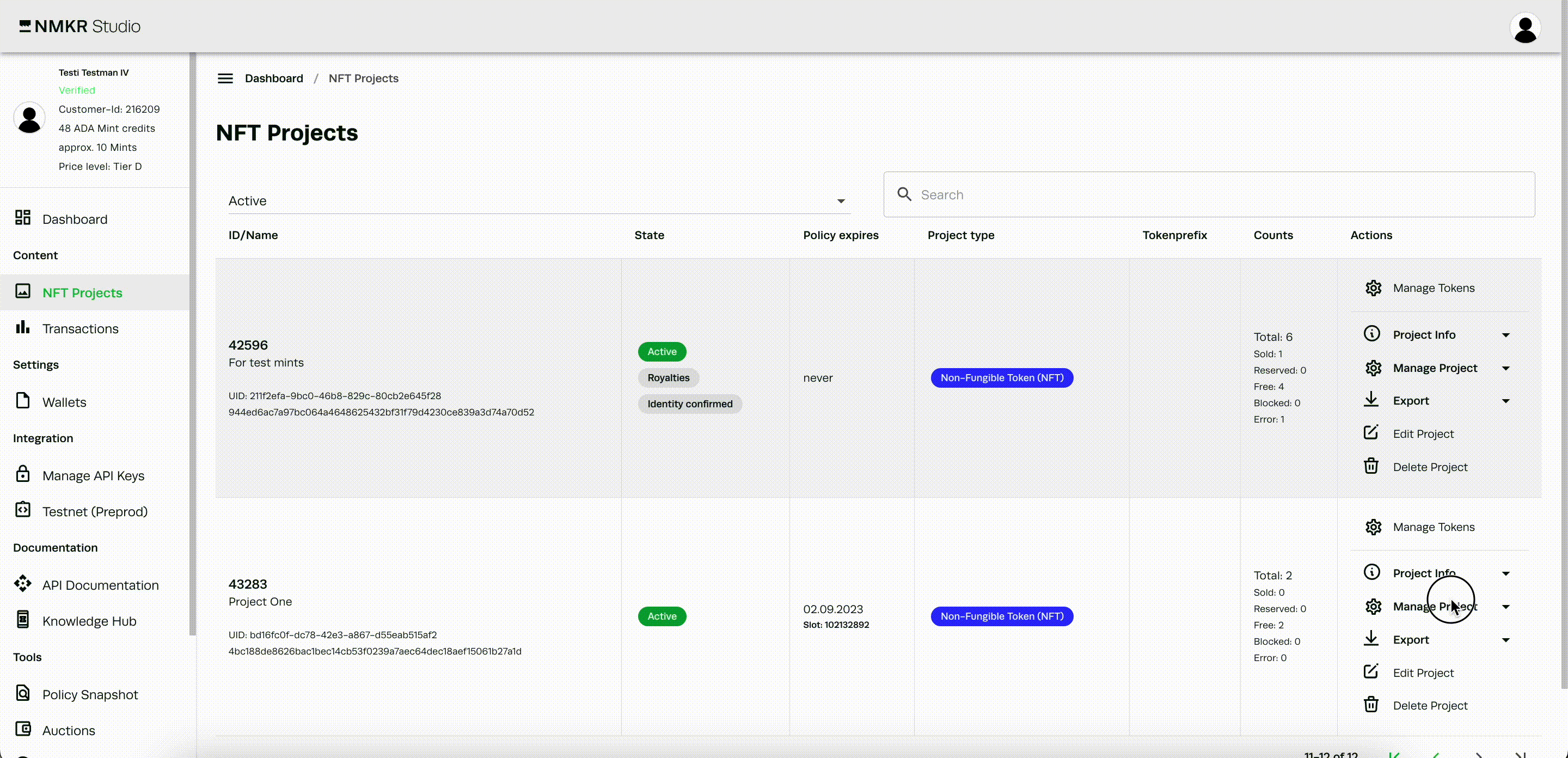 これを手動で行うこともできますし、特定の[ポリシーの](https://docs.nmkr.io/nmkr-studio/project/policy)所有者をホワイトリストに登録したい場合は、内蔵の[ポリシースナップショットツールを](https://docs.nmkr.io/nmkr-studio/tools/policy-snapshot)使用することもできます。