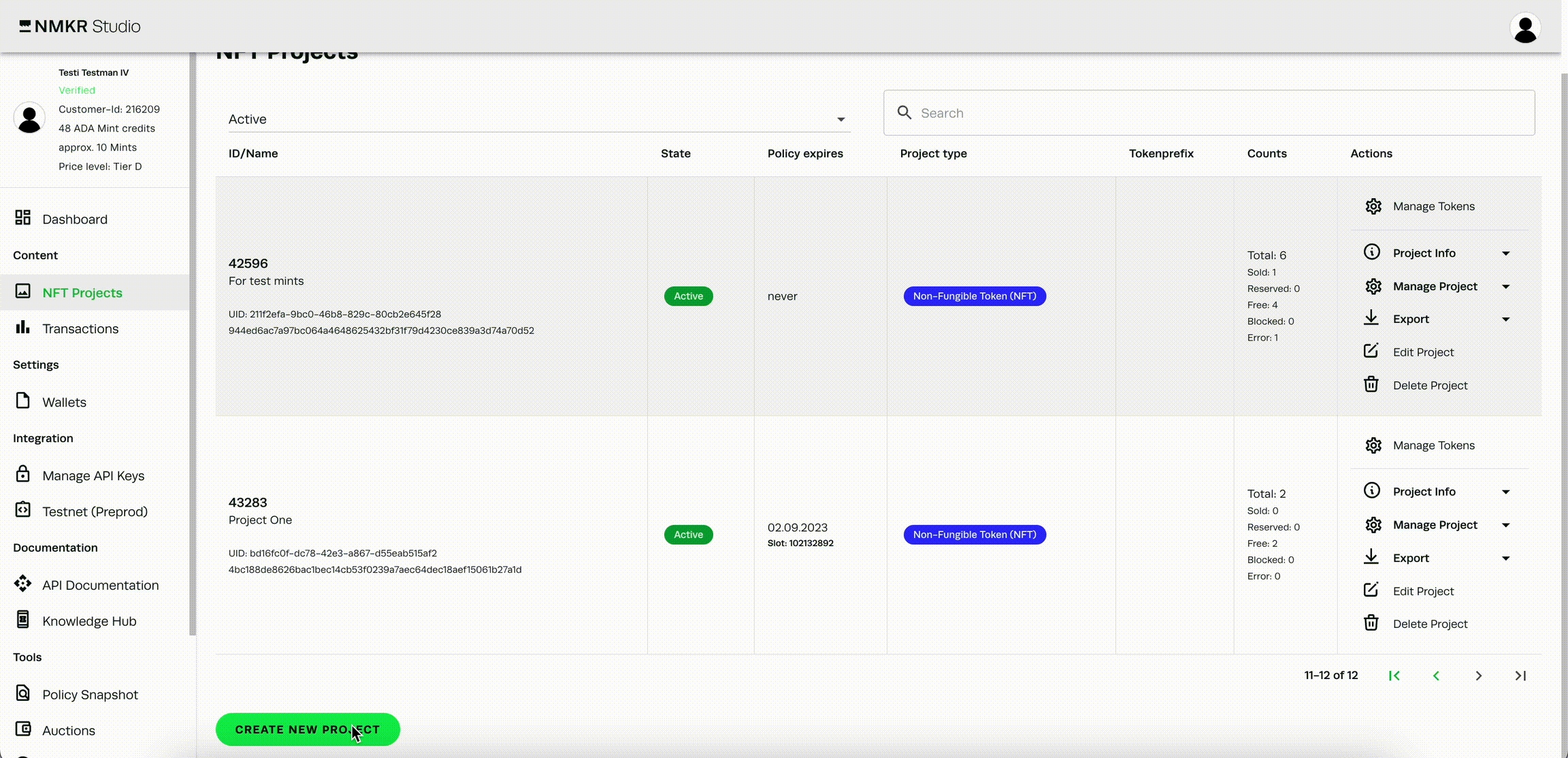 メニューの「NFTプロジェクト 」に移動し、まず新規プロジェクトを作成します。