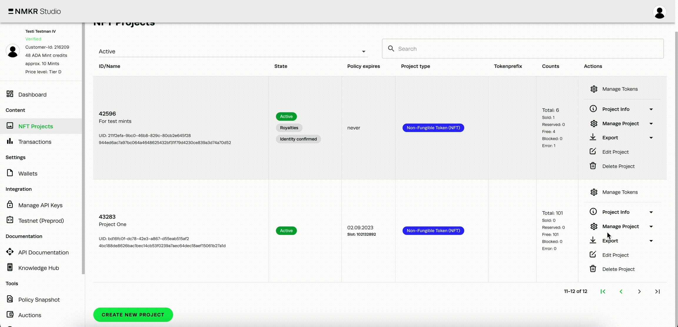 プロジェクト概要に移動し、アドレスにエアドロップされるべきトークンを含むプロジェクトの右側にある「プロジェクトを管理」の下にある「エアドロップ」ボタンを選択します。
