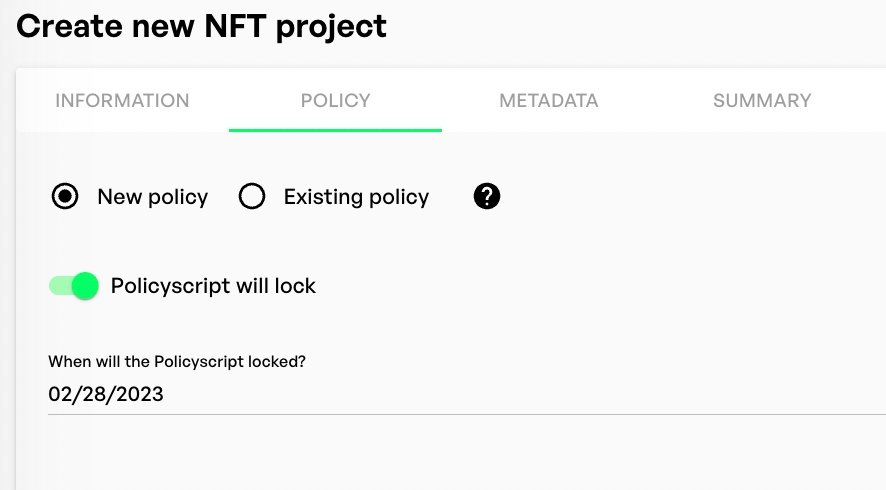 プロジェクトを作成する2番目のステップは、新しいポリシーIDを作成し、そのロック日を選択することです。上記の説明に従って、ロック日を慎重に選択してください。
