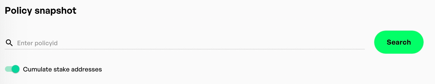ホワイトリストにポリシー・スナップショットを使用したい場合、ウォレットが各ステークアドレスに対して保有するトークンの量を累積することは理にかなっています。このオプションを有効にすると、各ステークアドレスのトークンをまとめたリストを受け取ることになり、各ウォレットは一度だけリスト表示されます。