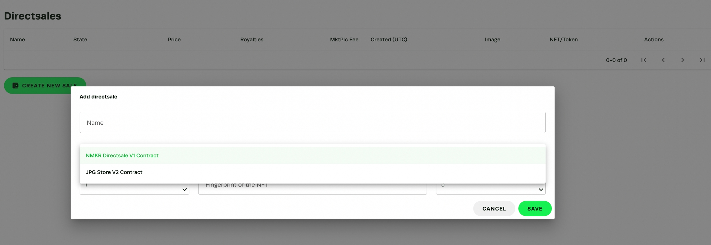 NMKR直接販売コントラクトV1または JPG ストア コントラクトV2