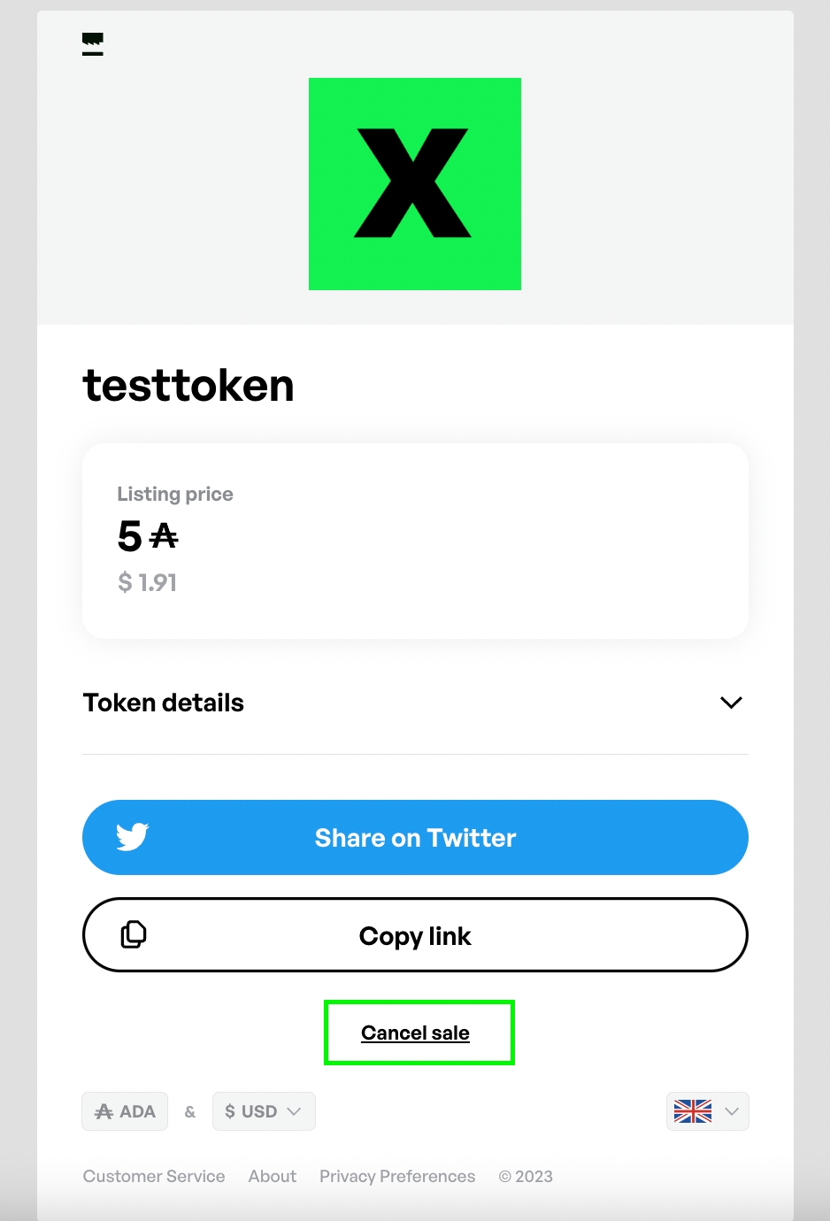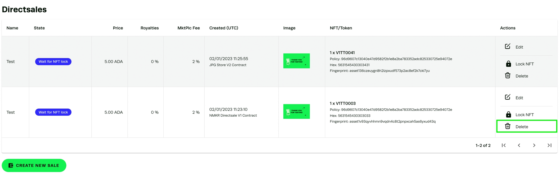 トークンがロックされていない限り、「削除」をクリックするだけで直販を削除することができます。トークンがすでにロックされている場合は、まず出品をキャンセルします。