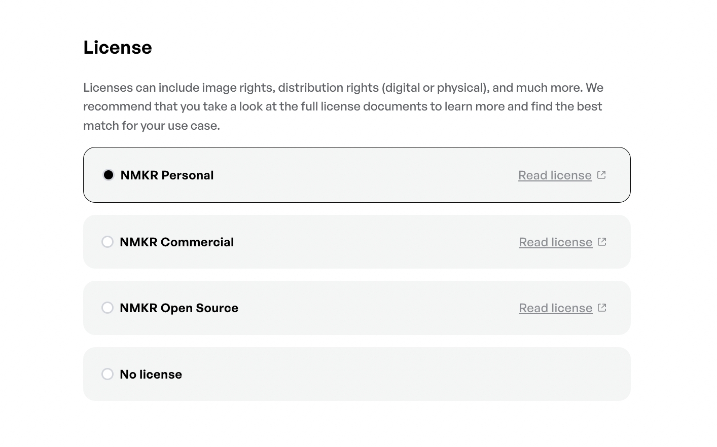 ここでのライセンスは、コレクション内のNFTに対する個別のものです。