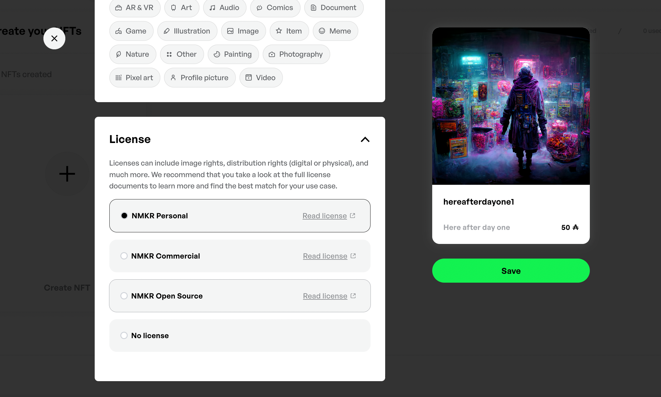 ここですべての詳細を指定したら、「Save(保存)」をクリックしてNFTを作成してください。