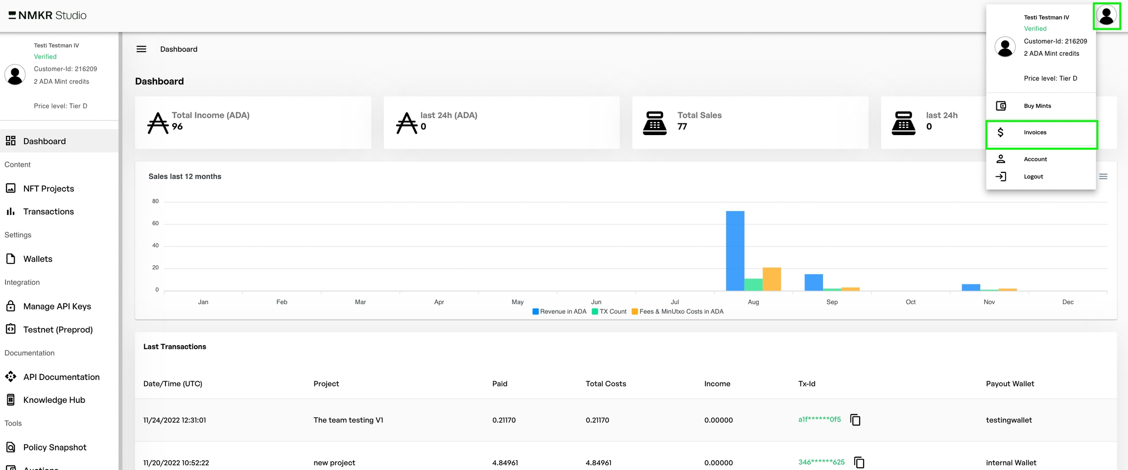 To download your invoices, please click on the account button first and then select “Invoices” from the dropdown.