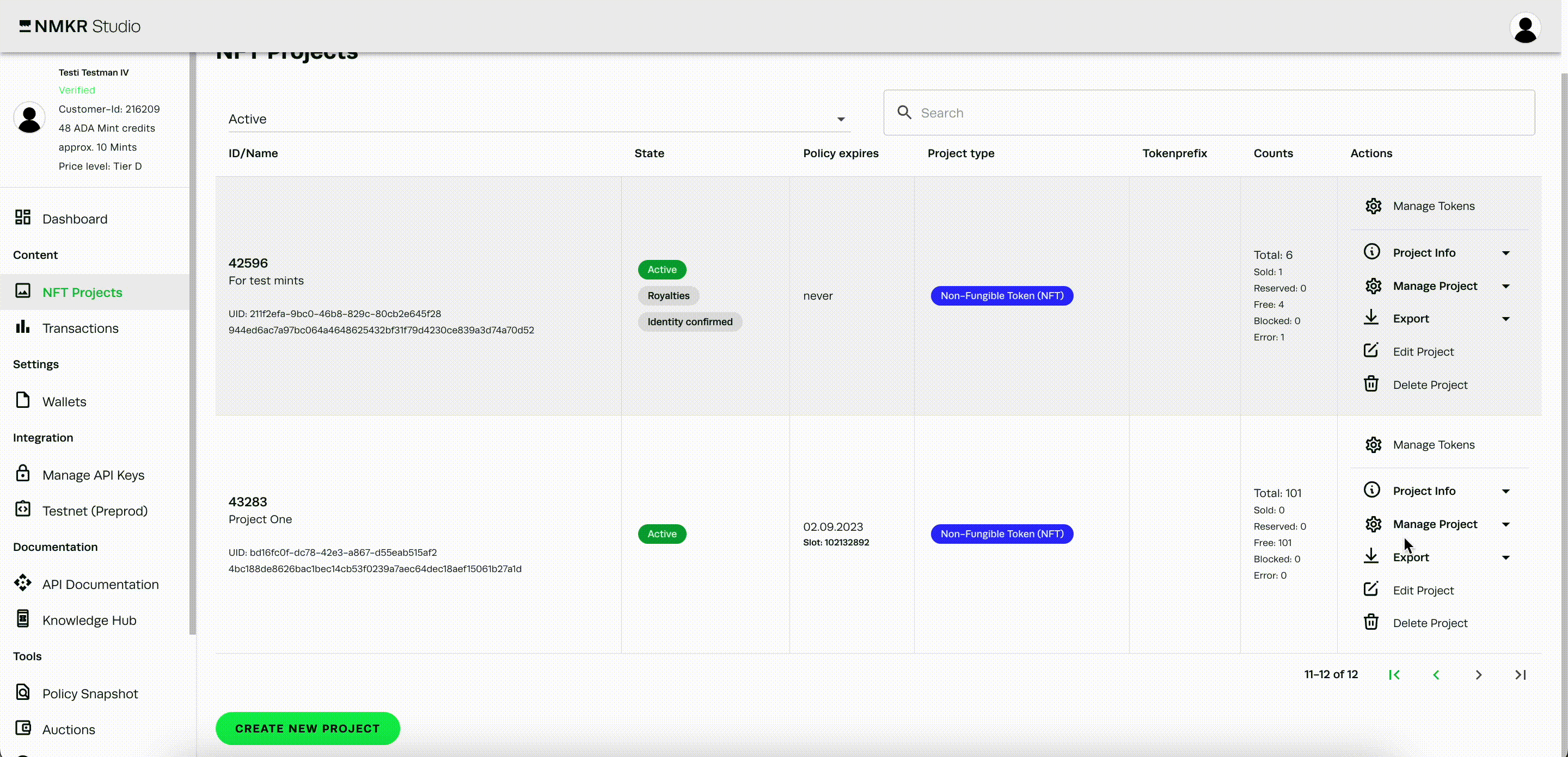Navigate to the Project overview and select the "Airdrop" button under "Manage Project" on the right side of the project that contains the tokens that should be airdropped to the addresses. Click "Upload Addresses" and upload the txt file or click "Use addresses with a specific policy ID". Select the amount for each single airdrop. Choose the method "Only one drop per wallet" if every address on the list should receive only one airdrop, or "Send drop to ALL addresses" if there are some addresses multiple times in the address list and they should receive an airdrop for every entry.