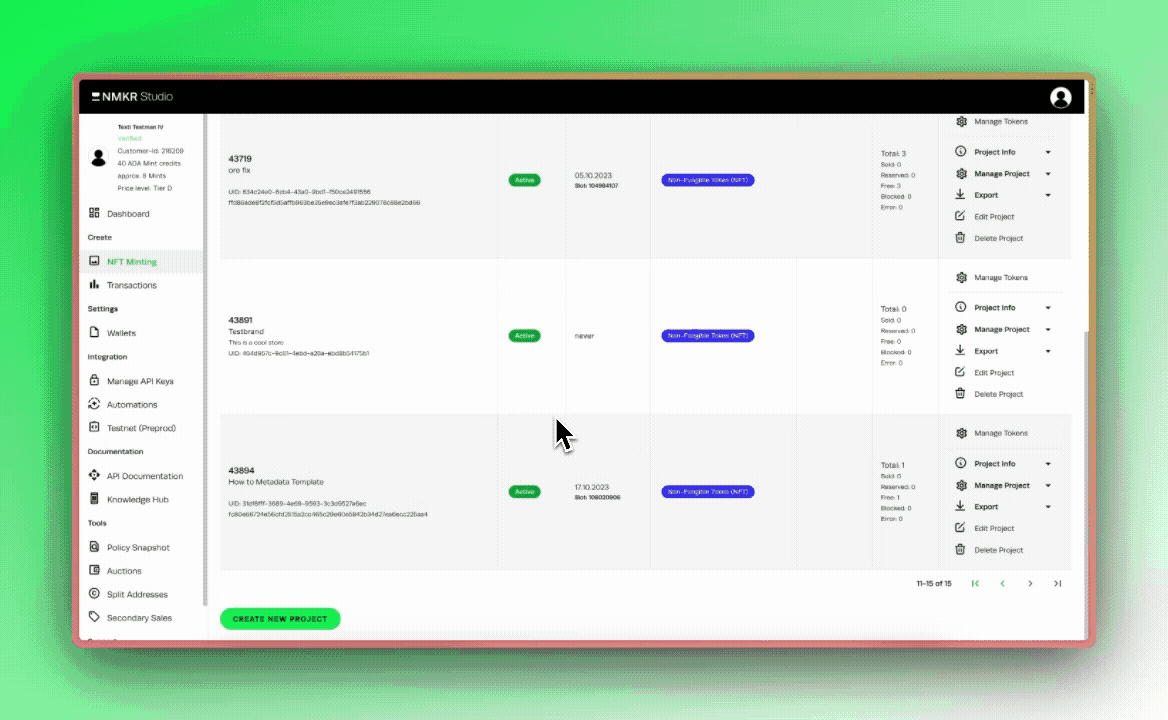 NMKR Studio allows you to specify a metadata template for each project individually.\