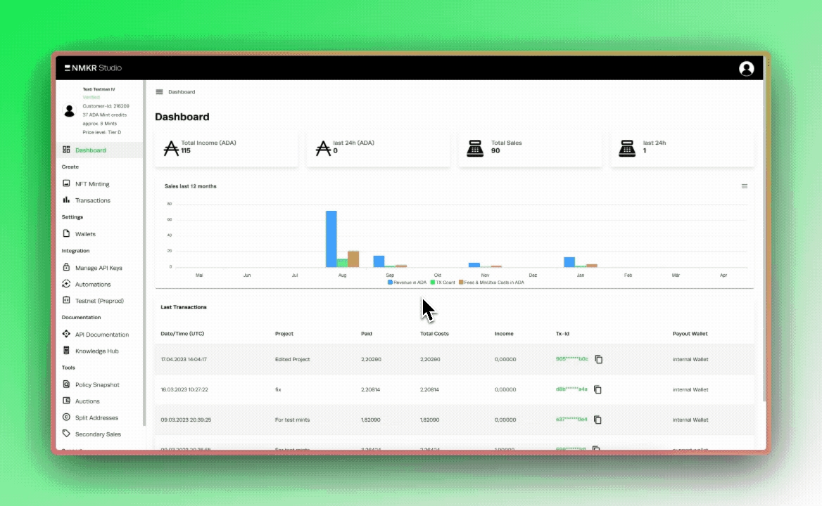 Specify the new address and percentage in the following tab and click on mint. To remove the royalties from the policy, please use the percentage "0,0%".
