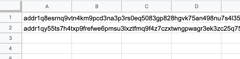 Please do not add Stake addresses here. This csv file can be created with any spreadsheet software like Excel or google sheets.