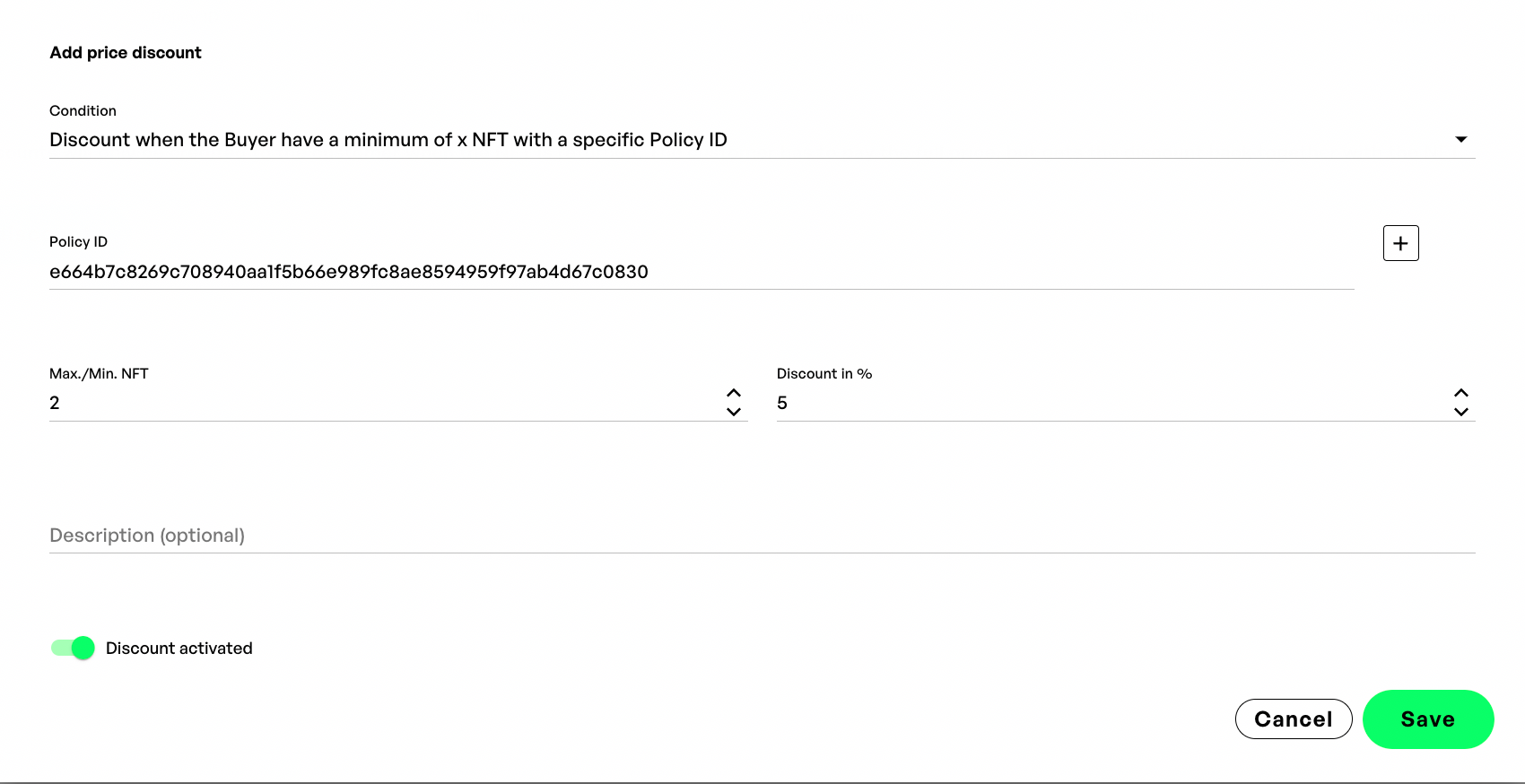 #### Discount by holding a token of a specific policy ID