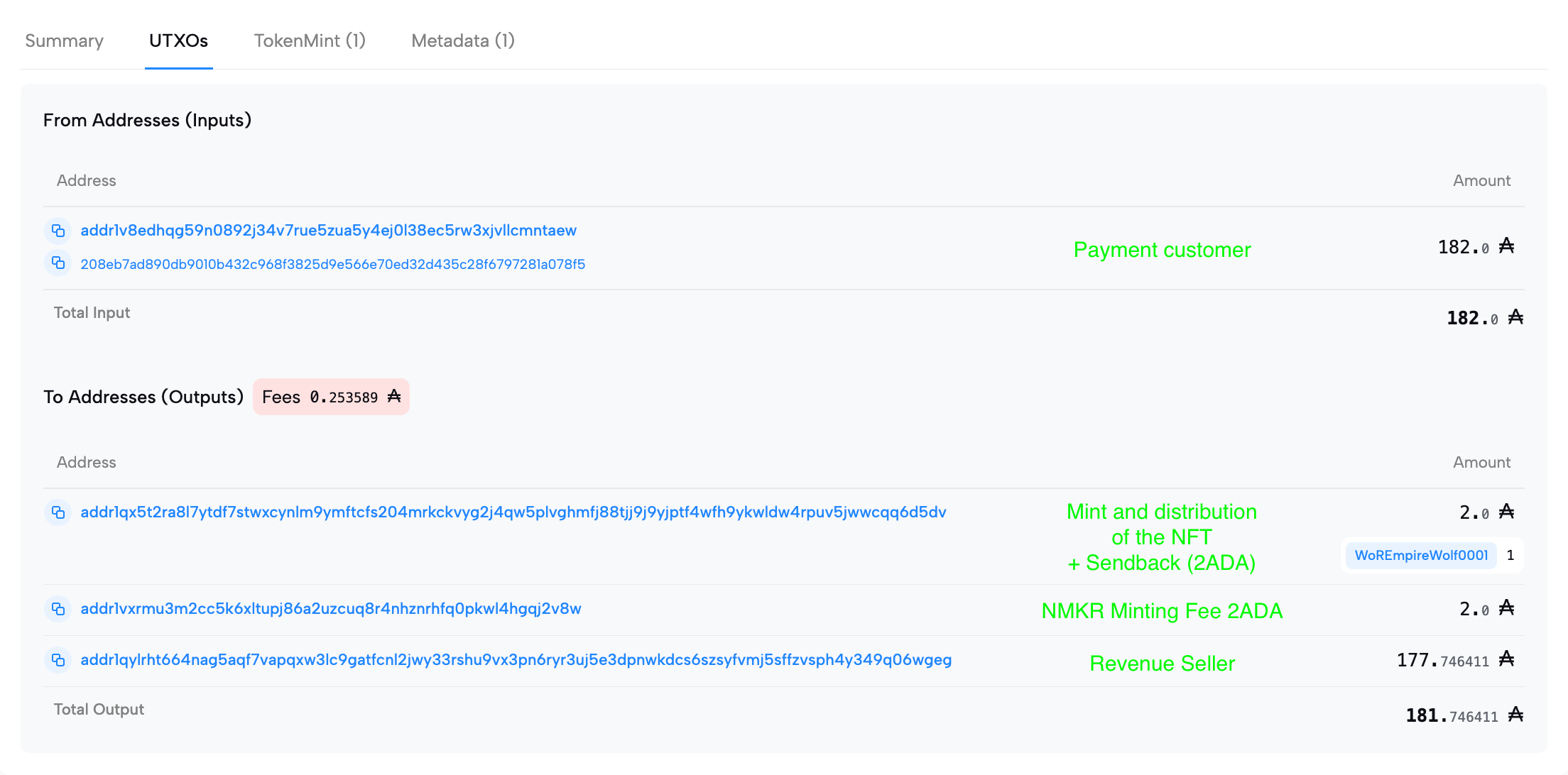 {% embed url="<https://cardanoscan.io/transaction/8979cddf7a9799ef46caf4d6c4bdd8d93f3a625962207e0bdb65a628a12ed1ef?tab=utxo>" %}