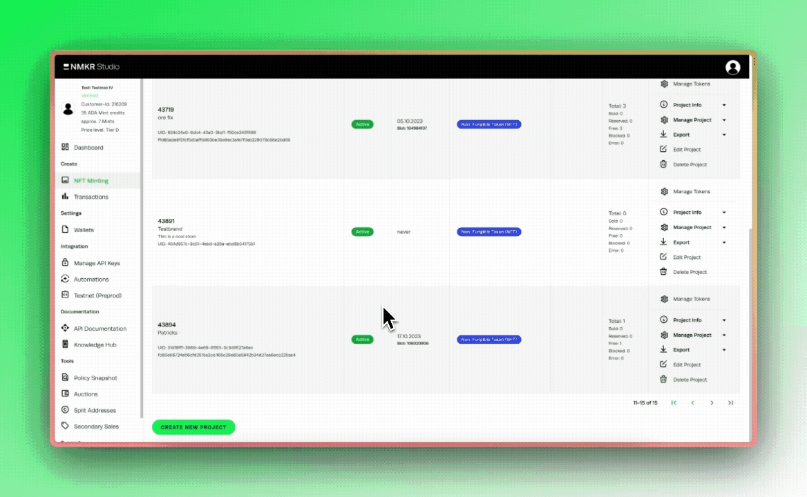 By standard, the NFTs price will be taken from the pricelist, but you are also allowed to specify a static price for every token manually here, please keep in mind that these prices won't work with random sales and you have to use the specific payment links of NMKR Pay for it.