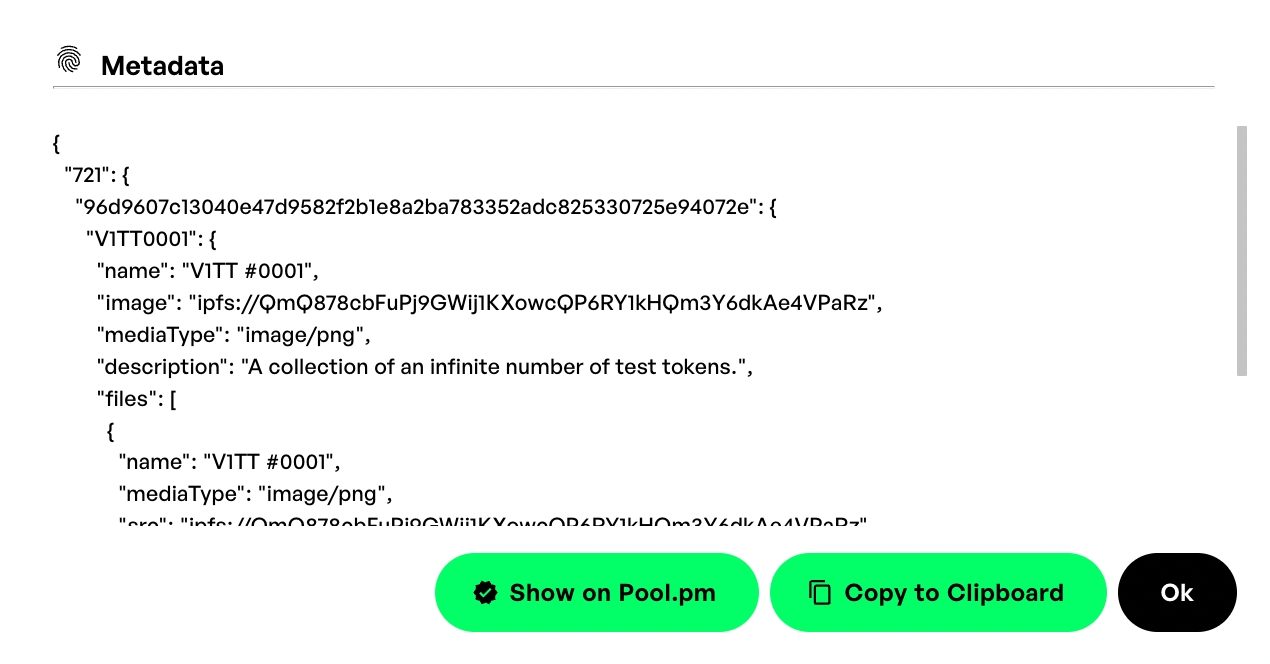 The pool.pm metadata test side allows you to preview and live edit the metadata of your token.