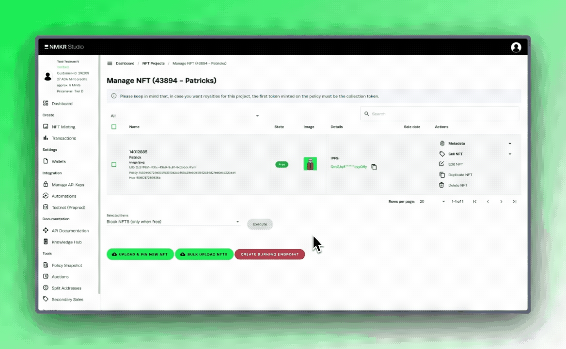 Go to the Manage NFT Tab of your project and select "Bulk upload NFTs".