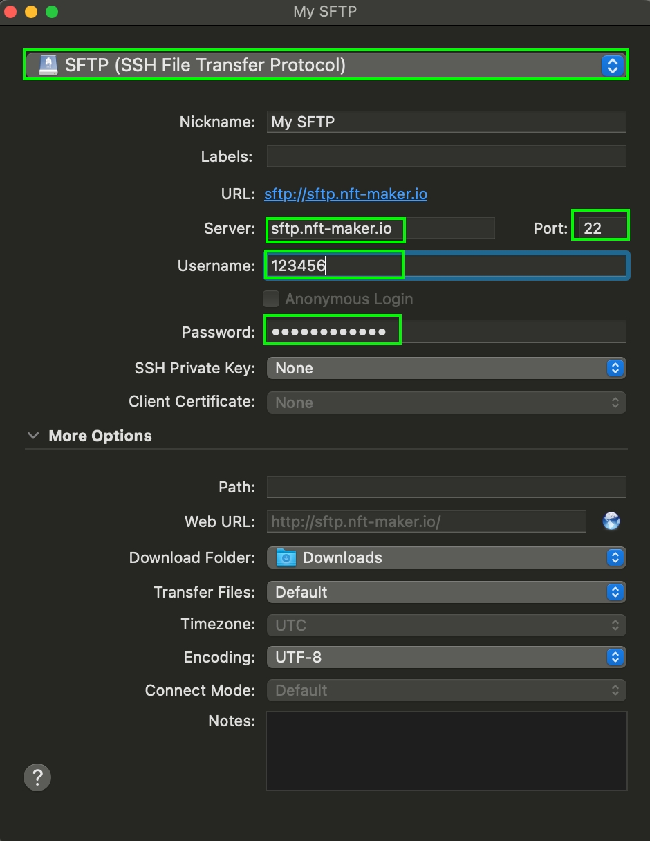 With the via SFTP you are able to upload all file formats that NMKR Studio supports, but with the advantage that you are now able to upload the files in bulk by drag and drop, as well as that bigger file sizes are supported